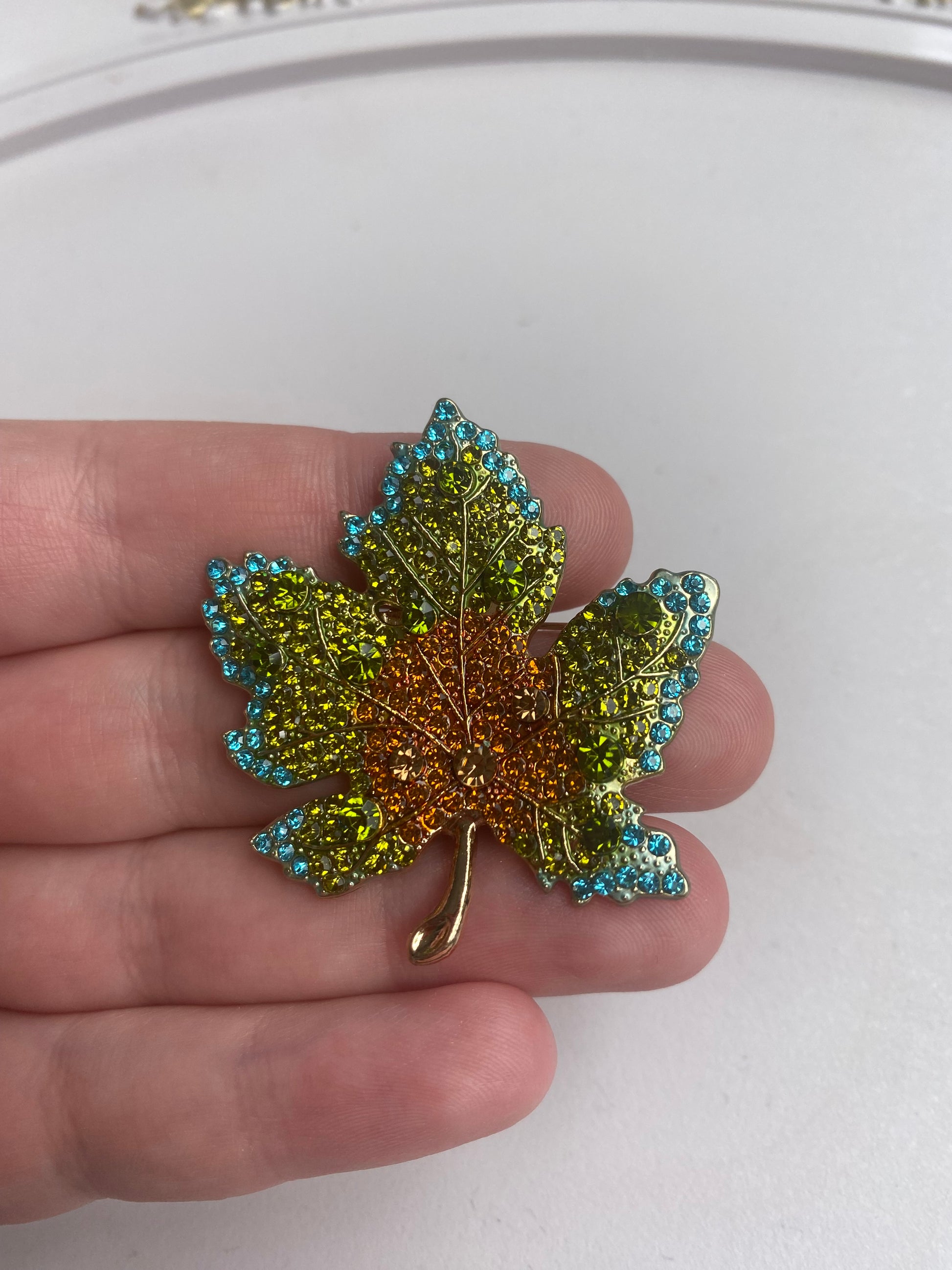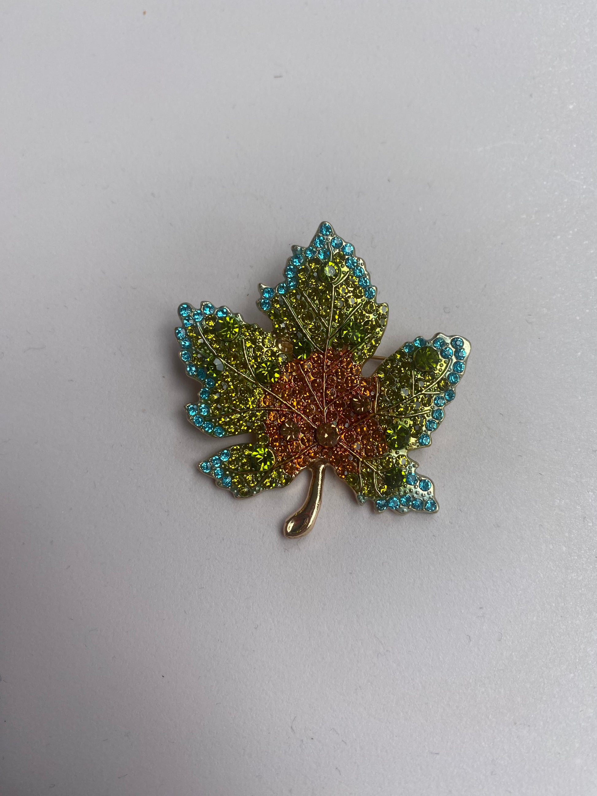 Zirkon Taşlı Akçaağaç Yaprak Broş