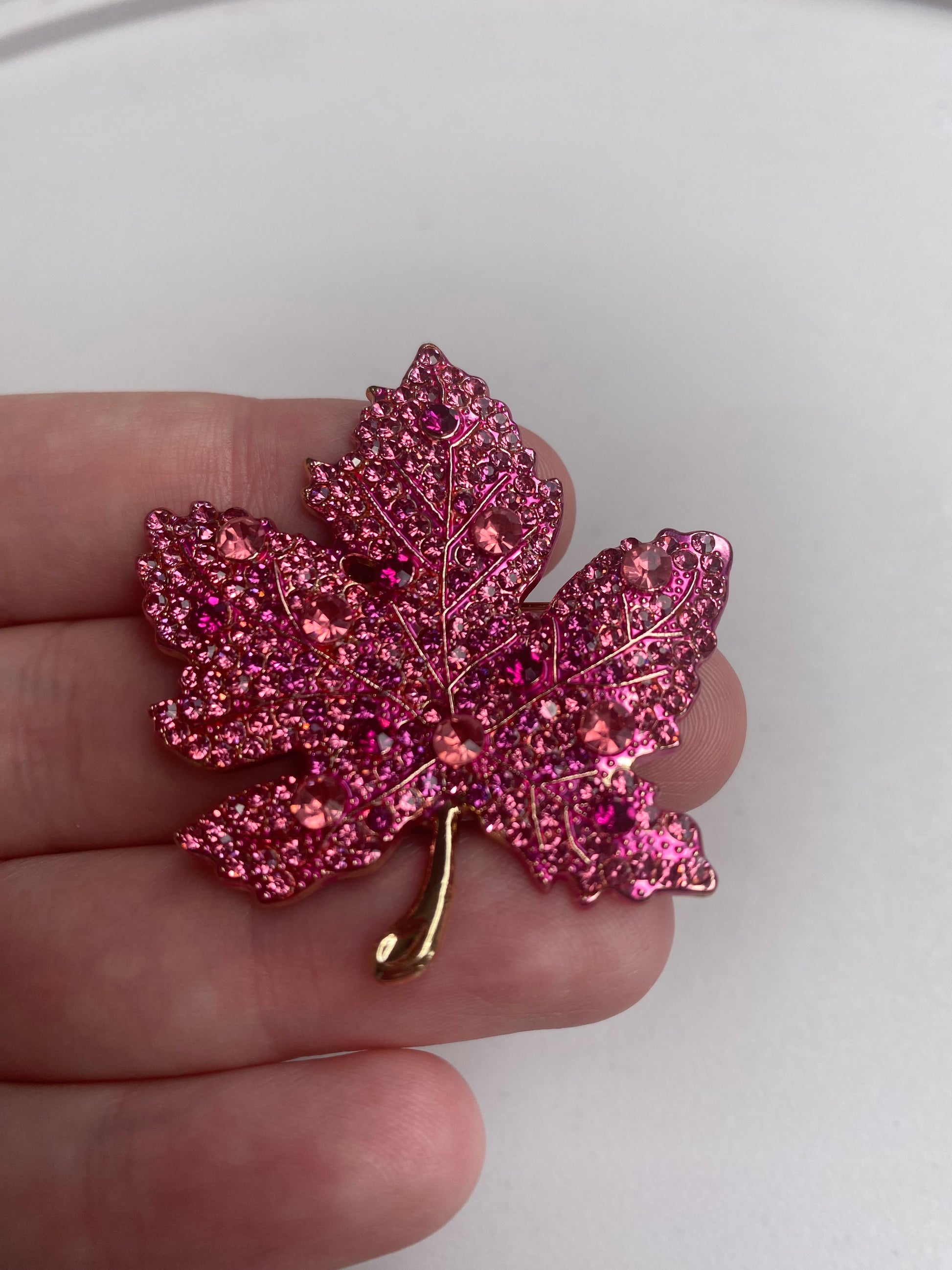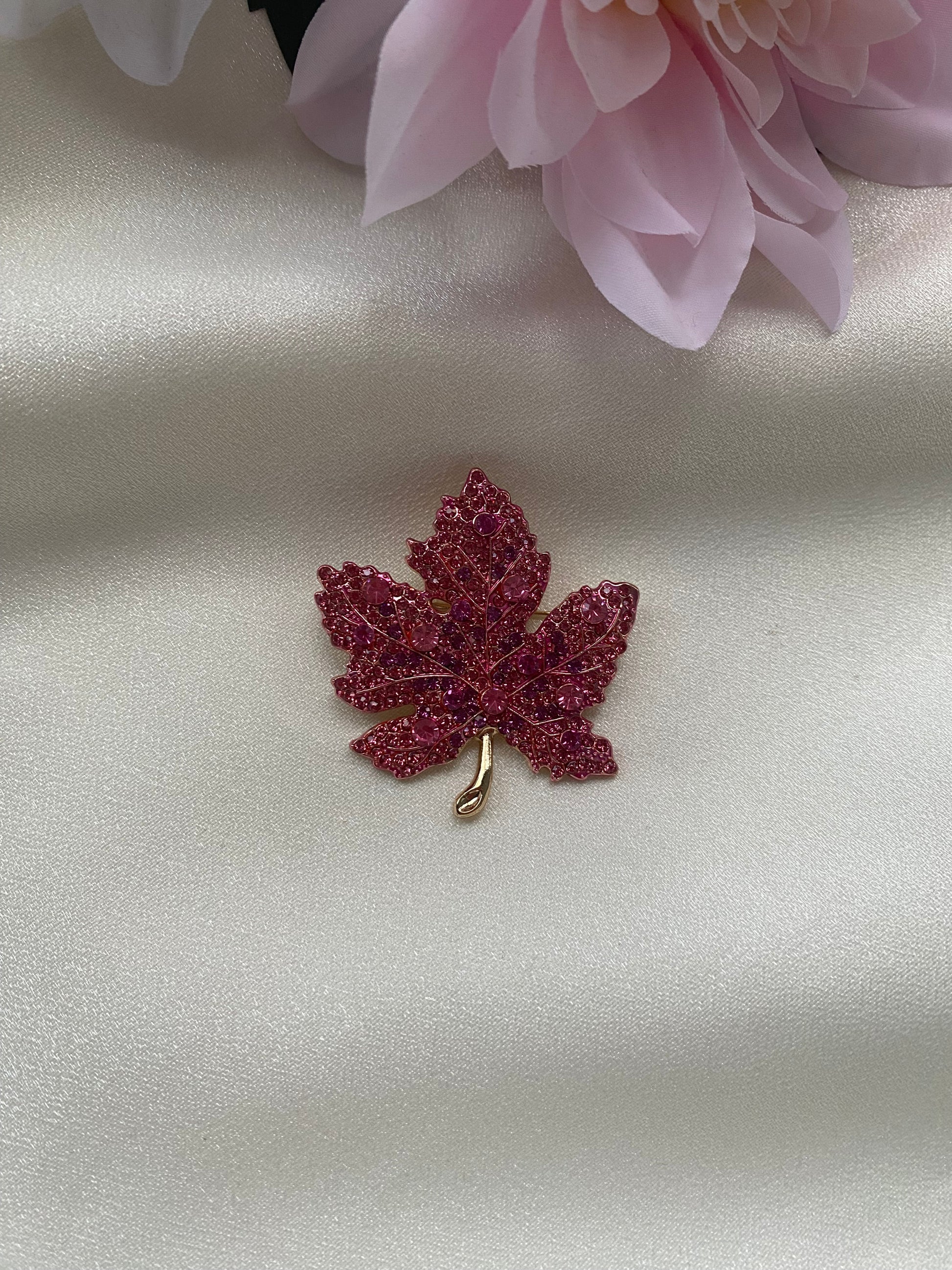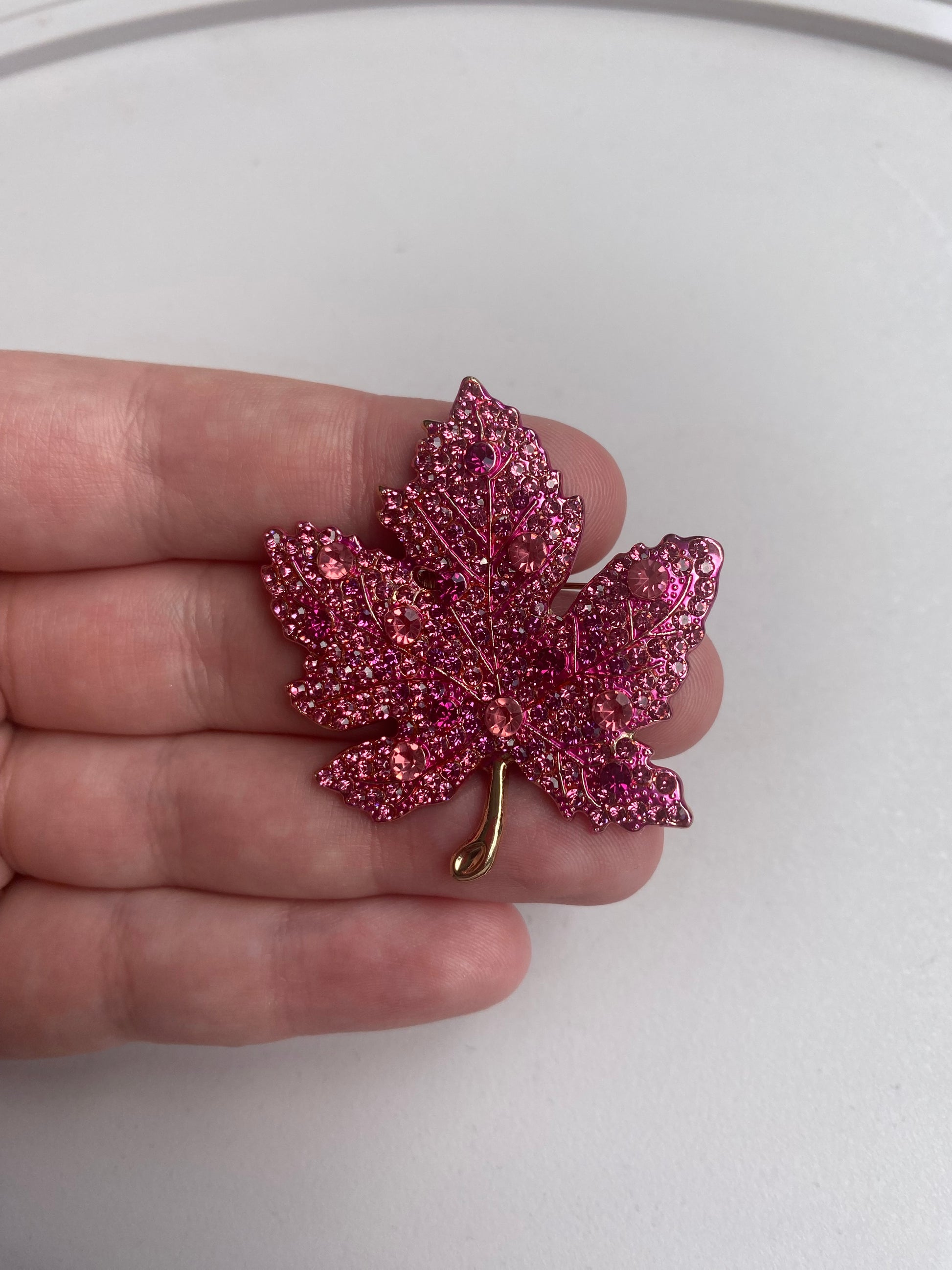 Zirkon Taşlı Akçaağaç Yaprak Broş